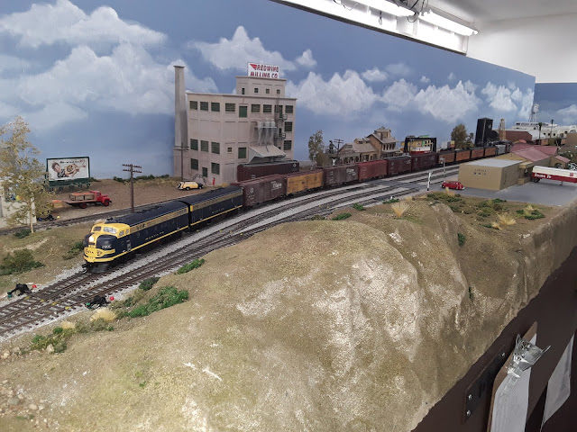 In a previous entry we covered the Union Pacific's 1947-1950 City of Los Angeles train, so this time we'll visit the UP's 1950-1954 version of the train, when it had acquired lots of new passenger cars and its first E8 diesels Then we'll cover some progress in wiring my layout, and some help with models of Victorville buildings, and more photos of Bill Messecar's HO layout.